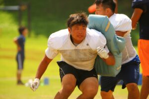 私事ではありますが、昨年度秋リーグの試合中に怪我をしてしまいました。リハビリの日々が続いておりプレーで貢献する事が出来ません。このような時だからこそ上回生としてチームを俯瞰し底上げを図りたいと思っております。